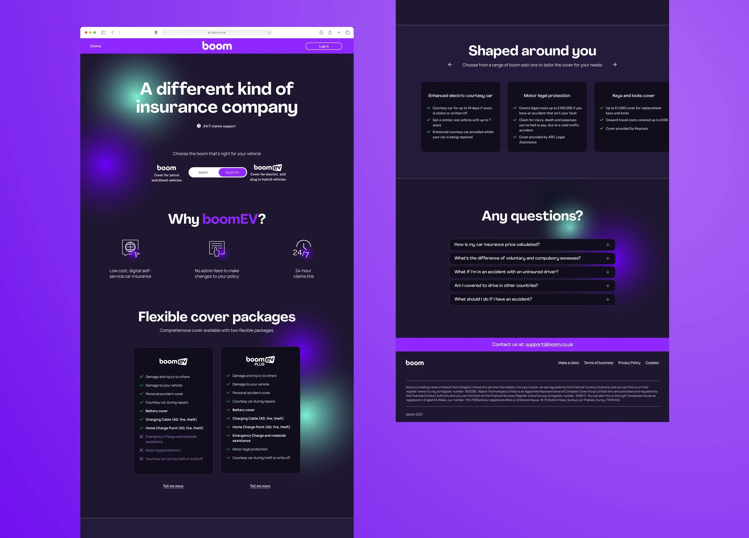 In the shared digital space of Boom and BoomEV, much of the content was identical due to the products being housed on the same website. However, the distinctions between the two offerings necessitated a unique approach. To address this, I introduced a toggle feature to seamlessly switch between petrol and EV content. This design decision not only maintained the integrity of both product lines but also added a delightful and unique element to the user experience, enhancing engagement and highlighting the distinct features of each product.