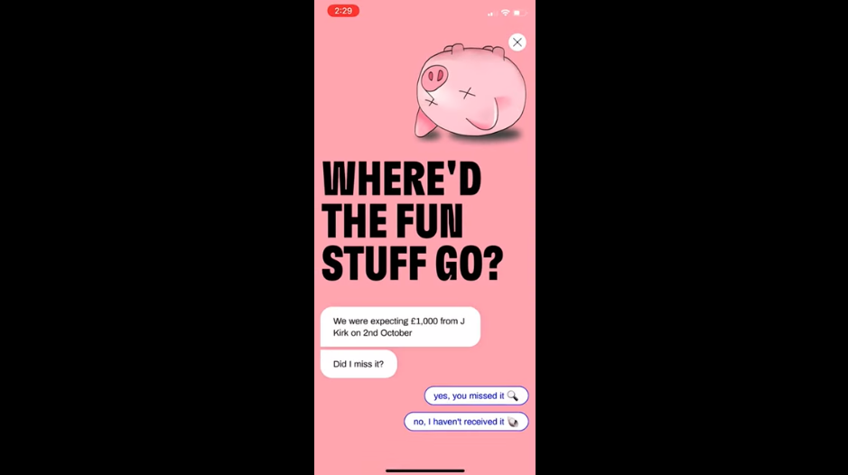 After a few experiments it turned out that we could, and it tested really positively. Users loved the fact that it brought the Cleo personality into quite a boring task (re-tagging your pay check). They also really liked that it kept them within the budget tab, so when they had completed the task and dismissed the full page takeover they could continue exactly where they had left off.